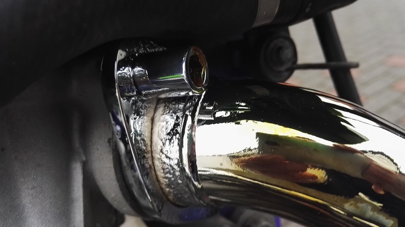 Edelstahlkrümmer eingebaut (noch im alten Rahmen)